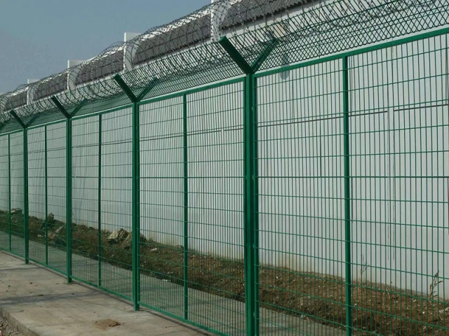 監(jiān)獄護(hù)欄網(wǎng)也叫監(jiān)獄圍墻網(wǎng)、監(jiān)獄圍欄、監(jiān)獄鋼網(wǎng)墻等,是非常重要的監(jiān)獄安全防護(hù)設(shè)施,由焊接鋼網(wǎng)加蛇腹形刀片刺繩網(wǎng)組合而成。本產(chǎn)品具有結(jié)構(gòu)新穎、堅(jiān)固緊