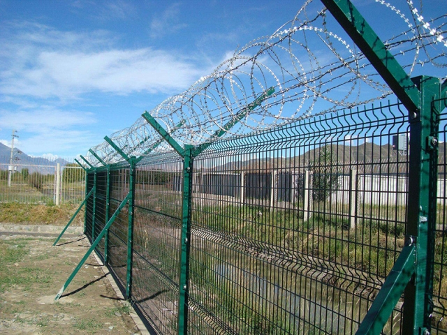 機場護欄網(wǎng)是一種采用低碳鋼絲焊接而成的網(wǎng)片 立柱 刺鐵絲(可選) 斜撐(可選)連接而成的護欄網(wǎng)產(chǎn)品。本產(chǎn)品美觀大方、防腐性好、易保養(yǎng)、防攀爬能力強。主要適用于機場周圍的隔離防護、美化及防翻越工程。本產(chǎn)品采用組裝式整體框架結構,具有堅固耐用、利于施工、安裝方便、快捷的特點。